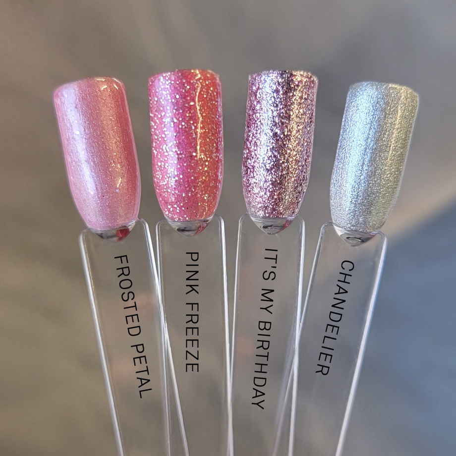 Silver rose. Metallic foil sparkle. Opaque. Cool undertone.