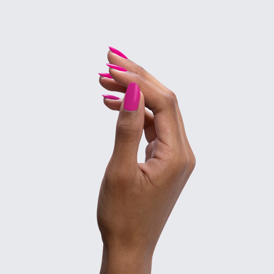 Neon barbie pink. Semi-gloss. Bright. Opaque. Cool undertone.